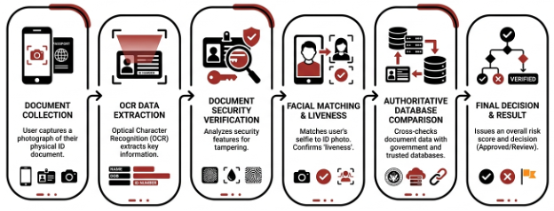 - Document validation, which relies upon the authenticity of government‑issued IDs such as passports or driver’s licenses.